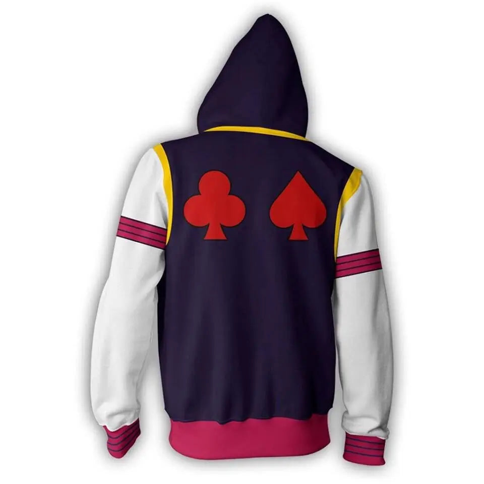 Bring trickster energy to your streetwear with the Hexed Bungee Gum Trickster - Hisoka - Hunter x Hunter Zipper Hoodie—built for comfort, styled for impact, and ready for your next anime-fit lineup.